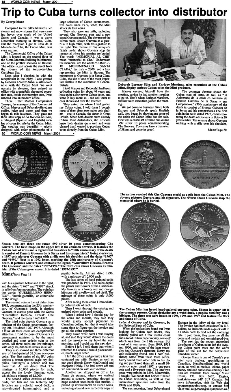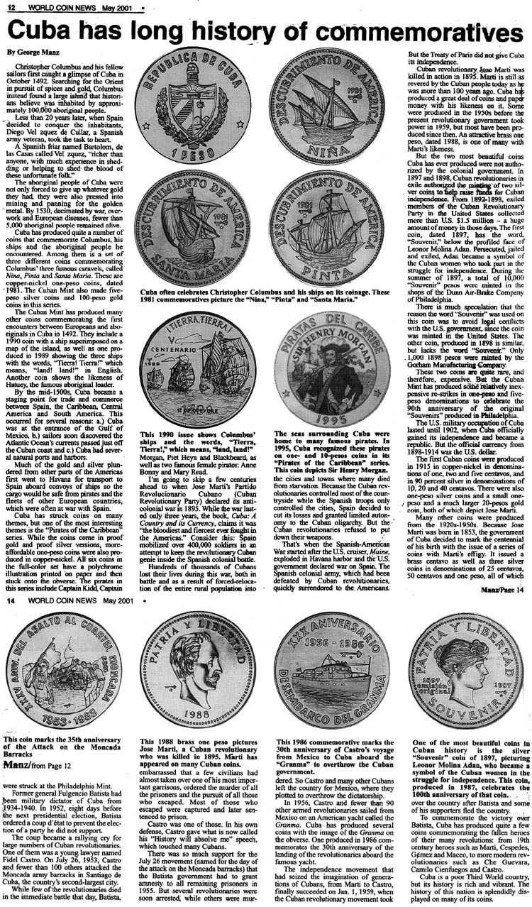 article from the May 2001 World Coin News. Cuba has long