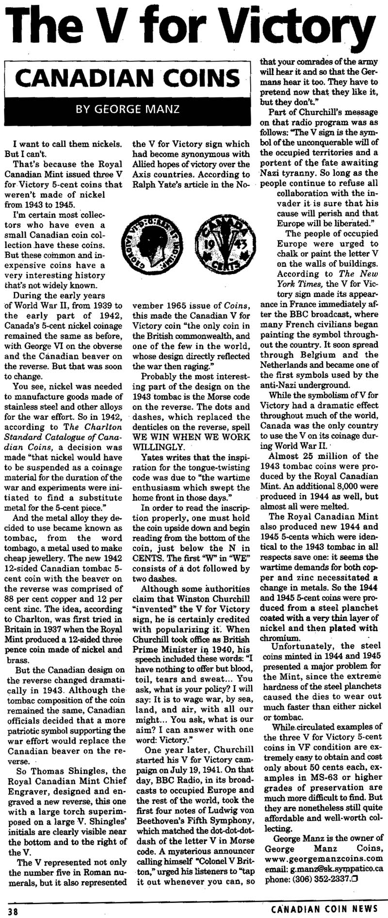 article from the November 19, 2002, Canadian Coin News. Viva